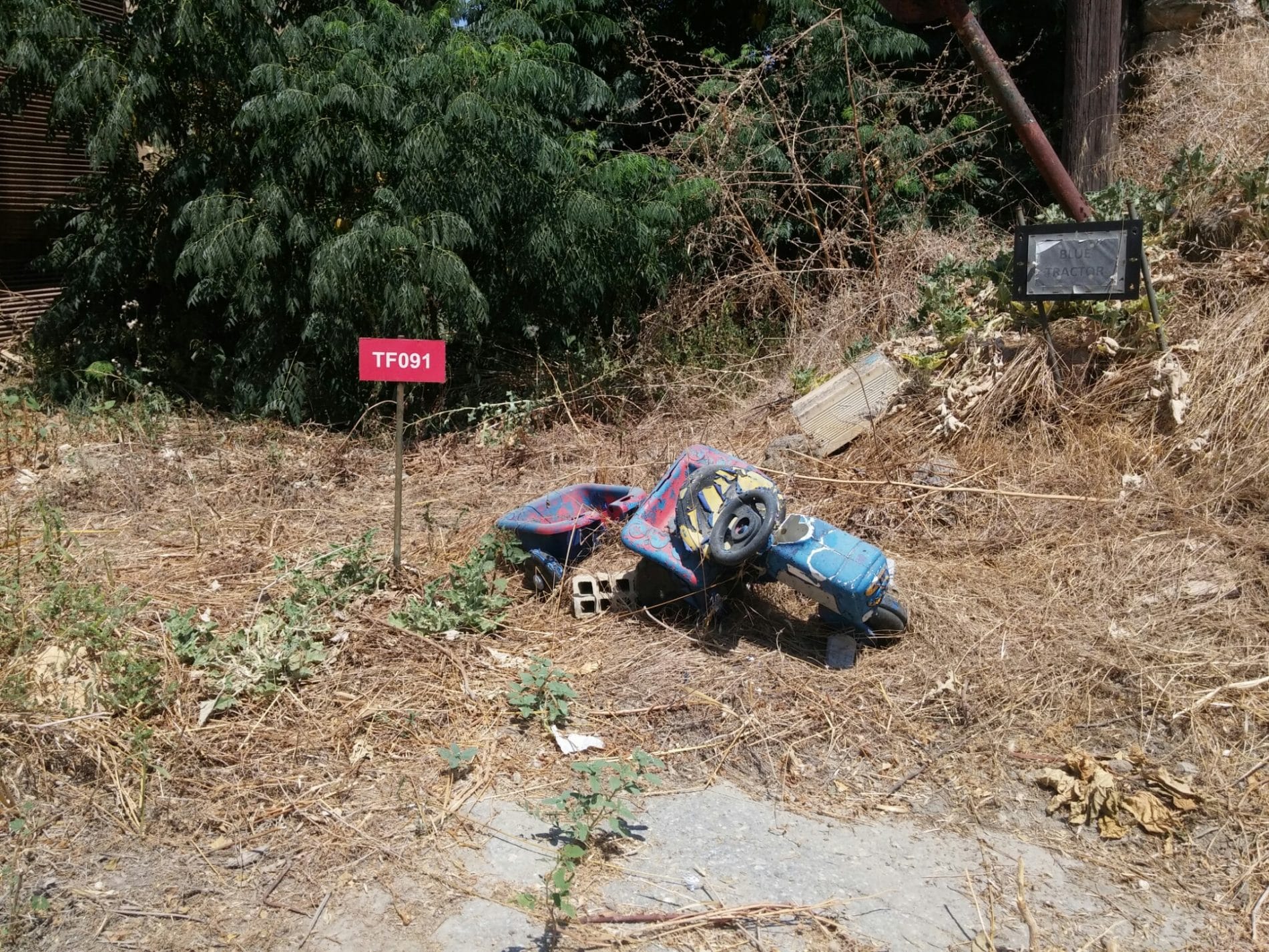 In Nicosia, Cyprus, there are markers for the border. The Green Line. One United Nations recognised marker is a childrens Blue toy tractor.